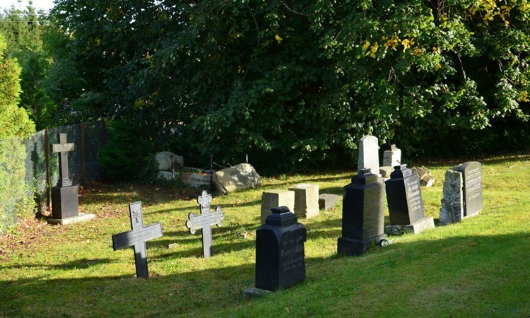 Po byłym cmentarzu ewangelickim usytuowanym przy kościele pw. Najświętszej Marii Panny nie zachował się ani jeden nagrobek. Za świątynią z odzyskanych płyt nagrobnych utworzono małe lapidarium. Zgromadzono tu płyty nagrobne i cokoły z początku XX wieku oraz żeliwne krzyże, odlewy wykonane z inskrypcją: imieniem, nazwiskiem, datami urodzenia i śmierci oraz cytatem fragmentu Biblii.