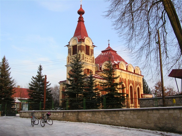 Od połowy XVI wieku istniała w Topólczy parafia prawosławna,po 1596 roku przemianowana na greckokatolicką.Po powstaniu styczniowym w roku 1864, ponownie staje się prawosławną.W 1911 roku rozpoczęto budowę murowanej świątyni,którą w 1917 roku Austriacy przekazali Kościołowi katolickiemu.