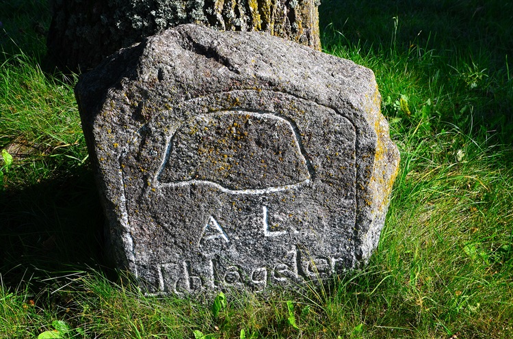 Do niedawna trudno było rozwikłać pytanie po co go tam ustawiono gdyż kamień był zapadnięty w ziemię, obecnie treść jest bardziej czytelna. Prócz wyrytego hełmu możemy teraz odczytać inicjały A. L. i napis Schlageter, niżej rok 1923. Niestety nikt z mieszkańców nie zna pochodzenia tego swoistego pomnika, chociaż hełm mógłby sugerować iż poświęcono go poległym podczas I wojny co było częstym upamiętnieniem po jej zakończeniu. Rozwiązanie tej zagadki trzeba szukać w historii powojennej Niemiec, czyli okres po roku 1918.