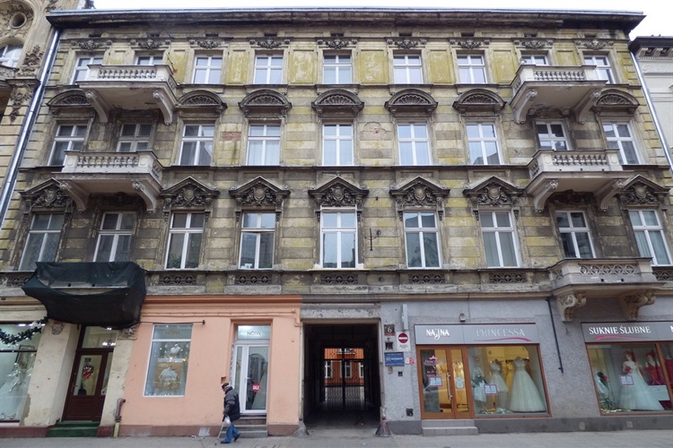 Trzypiętrowa kamienica znajdująca się przy ul. Jaracza 6 (dawniej ul. Cegielniana 38) była pierwotnie własnością Monata Zalmana Nusena. Została wzniesiona w roku 1891 na parceli należącej wcześniej (prawdopodobnie) do Monata Salomona. Projekt jej budowy sporządził architekt Ignacy Markiewicz. Archiwalne taryfy domów za kolejnych właścicieli nieruchomości wymieniają: 1903 – Monat Nusen i Tauba Hunda (małż.), 1904 – Monat Nusen i Lasman Gitla, 1912 – bracia Ajsyk (Ajzyk) – Hersz i Lejb Monat. Fronton kamienicy przetrwał do dziś bez mała w niezmienionej formie, prócz części parterowej, która była niegdyś boniowana.