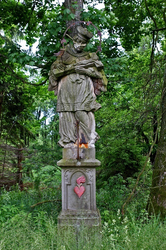 W okolicy dawnej miejscowości Czerwony Strumień, przy granicy po stronie czeskiej zachowała się figura św. Jana Nepomucena. Stara rzeźba stoi w pobliżu górskiego potoku Czerwony Strumień. Kamienna figura świętego pochodzi z XIX wieku.