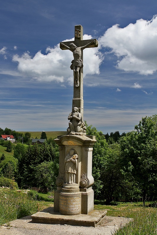 Jadąc drogą nr 389 z Zieleńca w stronę miejscowości Lasówka napotkamy krzyż przydrożny z 1866 roku. Kamienny krzyż przedstawia ukrzyżowanego Jezusa Chrystusa, pod krzyżem umieszczono klęczącą postać biblijną, a w cokole płaskorzeźbę św. Jana Nepomucena. W dolnej części cokołu wyryto inskrypcje.