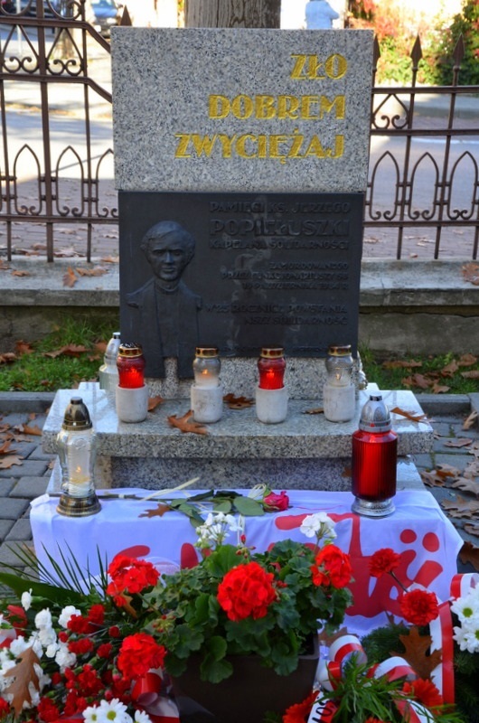 Symboliczny grobowiec kapelana warszawskiej „Solidarności” księdza Jerzego Popiełuszki usytuowany jest obok bazyliki kolegiackiej pw. św. Mikołaja. Na pomniku umieszczona jest między innymi napis "ZŁO DOBRYM ZWYCIĘŻAJ" i płaskorzeźba ks. Jerzego. Za symbolicznym grobowcem stoi wysoki drewniany krzyż misyjny.