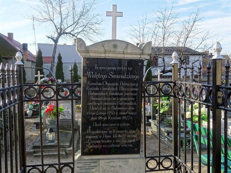 Św. Walenty ogłoszony został patronem zakochanych przez papieża Aleksandra VI i to ponad 500 lat temu (w 1496 r.) Babimost ma to szczęście, że ma własnego Walentego, który wprawdzie świętym nie jest i nie będzie, ale patronem zakochanych można nazwać go z całą odpowiedzialnością. Nosił nazwisko Snowadzki i żył w tym mieście na przełomie XIX i XX w. Zmarł w 1827 r. Na cmentarzu parafialnym zachował się jego nagrobek pięknie odrestaurowany za sprawą Towarzystwa Miłośników Ziemi Babimojskiej i hojnych sponsorów, a na nim intrygująca inskrypcja, z której wynika, że był fundatorem „funduszu Snowadzkiego na wyposażenie cnotliwych panienek Babimostskich”.