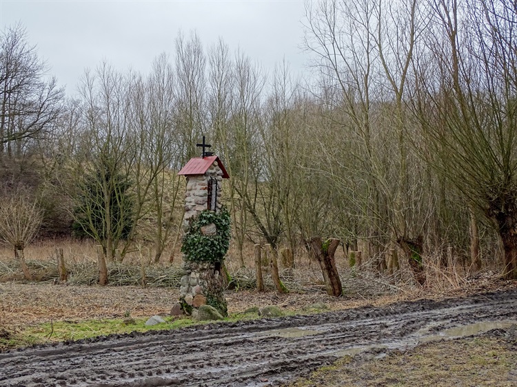 Chociaż wąska, gruntowa i czasami trudna do przebycia droga nie wygląda dziś imponująco, niegdyś była ważnym traktem wiodącym z Gniezna na Pomorze. Tuż obok wznosiło się grodzisko chroniące także brodu przez Wartę i granicy pomiędzy ziemiami książąt wielkopolskich i śląskich. Dziś szlaku strzeże ciekawa współczesna kapliczka, w której zamieszkał Chrystus Frasobliwy.