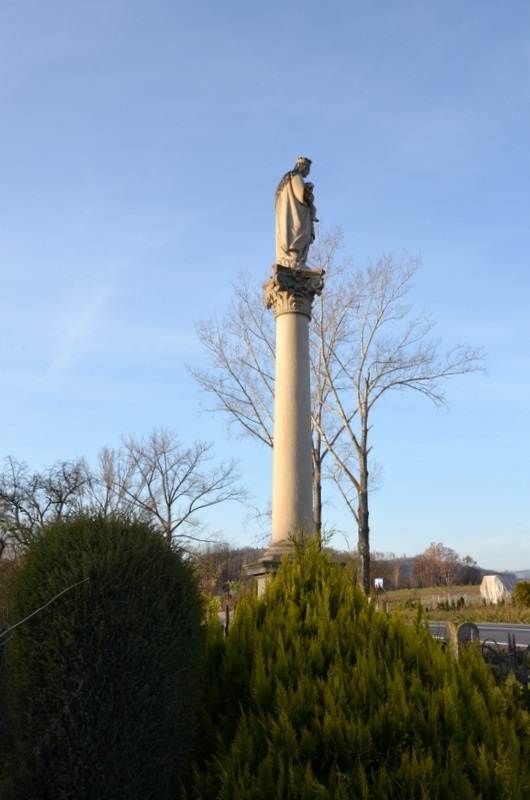 Na skraju drogi wojewódzkiej nr 386 (DW386) stoi wysoka kolumna zwieńczona rzeźbą. Wykonana z piaskowca kolumna, cokół i jego podstawa ustawione są na dwustopniowym podwyższeniu. Cokół w ścianie frontowej i bocznych posiada prostokątne płyciny. W płycinie frontowej ściany wyryta jest inskrypcja w języku niemieckim " H. Maria Mutter Gottes bitte fur uns" (Św. Mario Matko Boga módl się za nami). Na tylnej ścianie napis fundacyjny oraz data wzniesienia kolumny "Amand u. Anna Elsner - 1897". Wysoka kolumna zakończona jest głowicą zdobioną motywami roślinnymi, na której stoi kamienna rzeźba Matki Boskiej z Dzieciątkiem. Matka Boska okryta jest płaszczem, a na głowie ma koronę. Postument otoczony jest niskim metalowym ogrodzeniem od frontu wspartym na dwóch kamiennych słupkach.