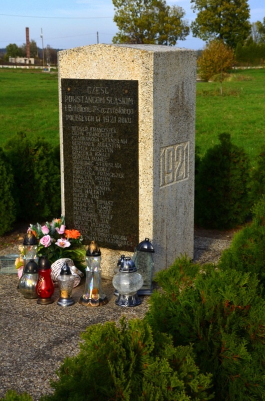 Pomnik upamiętniający powstańców to prosta płyta usytuowana w centrum wsi. Na dużej prostokątnej płycie przytwierdzona jest tablica pamiątkowa. W górnej części tablicy umieszczony został napis "CZEŚĆ POWSTAŃCOM ŚLĄSKIM I Batalionu Pszczyńskiego POLEGŁYM W 1921 ROKU", poniżej imiona i nazwiska poległych powstańców i niżej napis "ORAZ 20 POWSTAŃCÓW O NIEZNANYCH NAZWISKACH". Na boku płyty data – 1921.