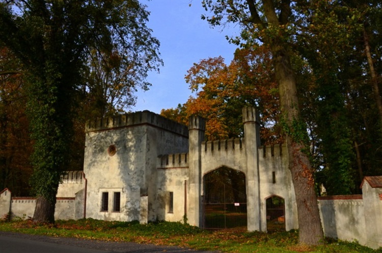 W II połowie XIX wieku ówczesny właściciel pałacu hrabia Hermann von Seherr-Thoss przebudował barokowy pałac nadając mu neogotycki wygląd. Wtedy też przy pałacu powstał park i dwie prowadzące na jego teren strażnice parkowe. Stróżówki te wzniesiono wg projektów opracowanych przez niemieckich architektów: Karla Lüdeckei Rudolfa Gottgetreu.