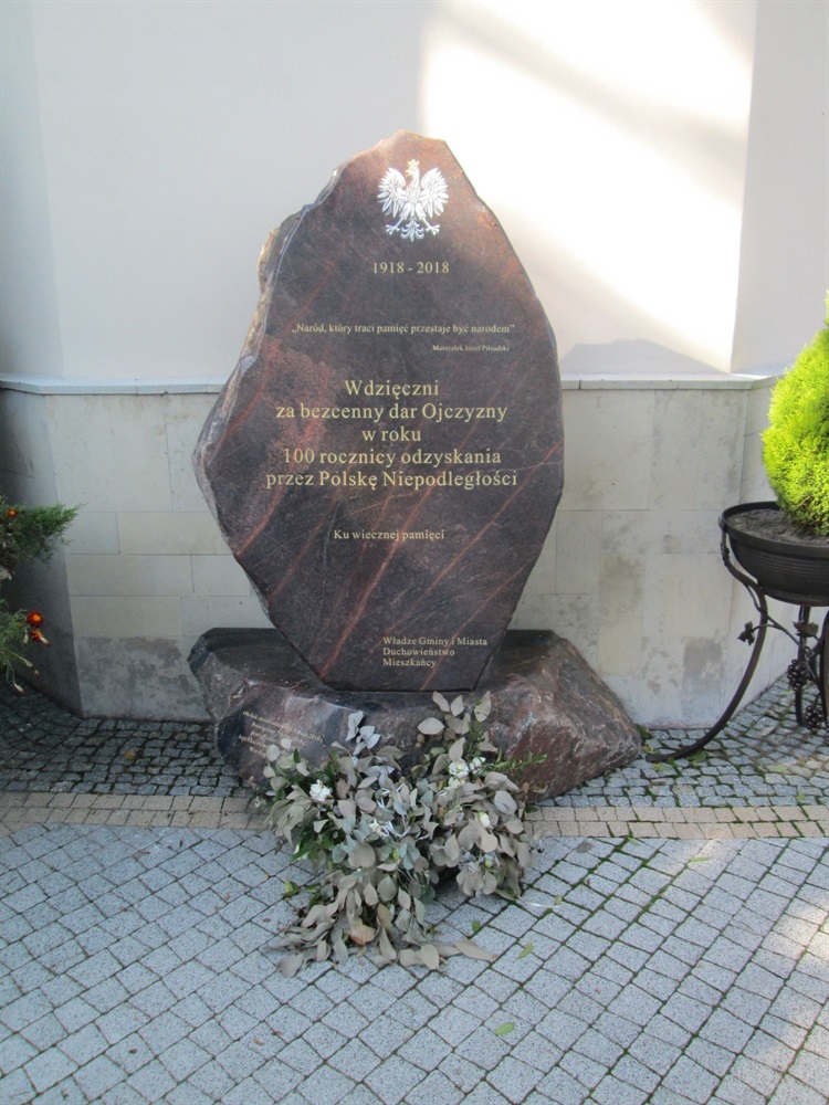 Pomnik upamiętniający 100-lecie odzyskania przez Polskę Niepodległości znajduje się przy kościele p.w. Świętego Wita. Ufundowany został przez władze gminy i miasta, duchowieństwo oraz mieszkańców. Osłonięty został 3 maja 2018 roku, poświęcony 7 maja 2018 roku przez biskupa włocławskiego Wiesława Meringa. Na pomniku pod orłem w koronie znajduje się sentencja Marszałka Józefa Piłsudskiego, która brzmi „Naród, który traci pamięć przestaje być narodem”.