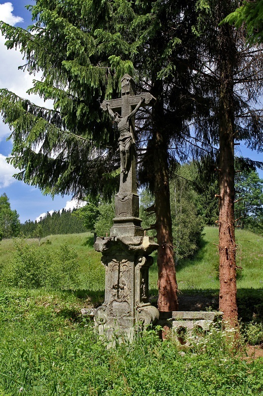 W Rudawie, przysiółku wsi Poniatów stoi grupa figuralna Ukrzyżowanie. Krzyż z rzeźbą ukrzyżowanego Jezusa Chrystusa stoi nad brzegiem rzeki Dzika Orlica. Niestety jak większość rzeźb sakralnych w tych okolicach zniszczono. W 2017 roku obiekt nie posiadał kamiennych figur - postaci biblijnych pod krzyżem.