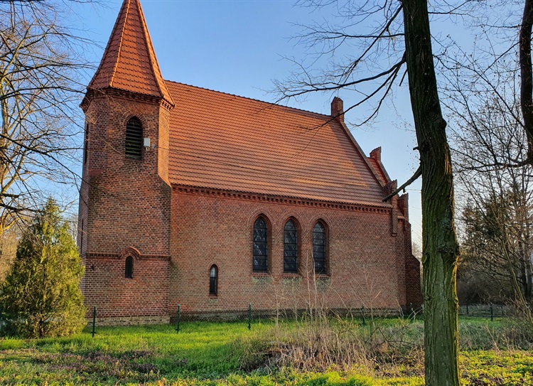 Pierwszy ewangelicki dom modlitwy został zbudowany przez kolonistów już pod koniec XVIII w. Korzystali z niego także mieszkańcy przysiółka Graby (Beatenwalde ). Msze odprawiał pastor, który przyjeżdżał tutaj z Kołczyna. Nie udało mi się ustalić jak wyglądała i co stało się z pierwszą świątynią. Ta, która stoi we wsi dziś, została zbudowana w 1900 r. Nadal jest filią parafii w Kołczynie . Msze odprawiane są w co drugą sobotę (na zmianę z Krzemowem) o godz. 18:00.