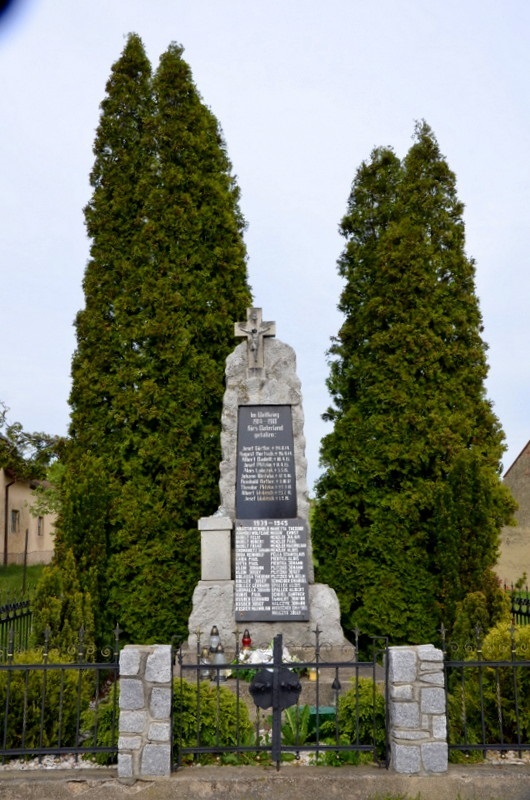 W okresie międzywojennym we wsi wzniesiono pomnik poświęcony poległym na frontach I wojny światowej mieszkańcom miejscowości. Pomnik wieńczy krzyż z ukrzyżowanym Chrystusem, poniżej wmurowana jest tablica z inskrypcją w języku niemieckim oraz nazwiskami, imionami i datami śmierci. Pod tablicą umieszczony był motyw militarny, wizerunek Krzyża Żelaznego (Eisernes Kreuz) – najwyższego niemieckiego odznaczenia wojskowego umieszczonego pomiędzy gałązkami wawrzynu – symbolu żałoby i dębu – symbolu męskości. Po II wojnie światowej w miejscu motywu militarnego wmurowano tablicę upamiętniającą mieszkańców wsi poległych w latach 1939-1945.