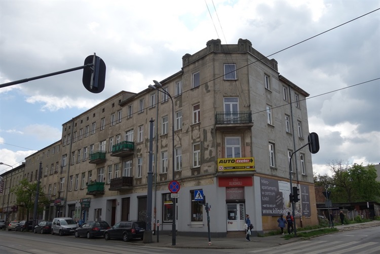 Monumentalna, narożna, trzypiętrowa kamienica znajdująca się przy zbiegu ulic: Rzgowskiej 47 (dawniej wieś Dąbrówka Mała) i Piasecznej należała pierwotnie do małżeństwa Antoniego i Marianny Trzcińskich. Właściciele posiadali projekt na jej budowę w roku 1910. Dokument opracował inż. budowlany Albert Krauss. W roku 1914 Trzciński nadbudował część domu o poddasze według projektu inż. budowlanego Kazimierza Woźnickiego. W różnych latach pod w/w adresem funkcjonowały m.in.: zakład tapicerski Moszka Nasielskiego, zakład krawiecki Eliasza Rudnickiego, sklep i warsztat rzeźniczy Jana Kędzia.