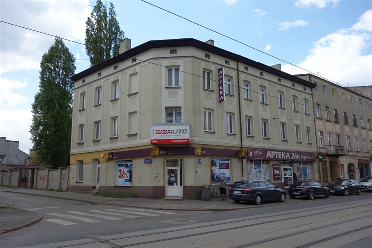 Dwupiętrowa, narożna kamienica stojąca przy zbiegu ulic: Rzgowskiej 51 (dawniej wieś Dąbrówka Mała) i Wójtowskiej należała pierwotnie do małżeństwa Józefa i Bronisławy Tarkowskich. Dom pochodzi z około 1911 r. i być może jest autorstwa architekta Romualda Millera. Tarkowski na nieruchomości prowadził Drogerię – Skład Materiałów Aptecznych i Farb. Następnie funkcjonowała tu apteka mgr Ireny Sinieckiej, która w latach 1950-52 została upaństwowiona i przekazana pod zarząd Cefarmu.