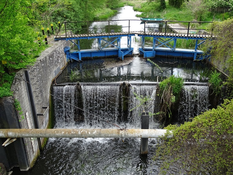 Warto wiedzieć: Przy śluzie ulokowany jest spory ośrodek oferujący organizację spływów kajakowych. Można stąd dopłynąć kanałem do jazów fortecznych nr 712 i 714 oraz do położonego na prywatnym terenie Panzerwerku 706. Ośrodek oferuje również noclegi i ciepłe posiłki. Szczególnie polecam przepyszne, ręcznie lepione pierogi (wiśniowe i ruskie rozpływają się w ustach).