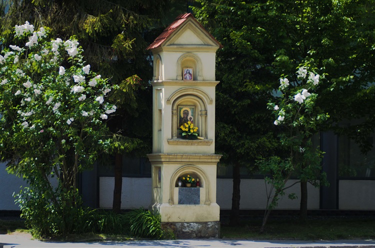 3-kondygnacyjna kapliczka słupowa wzorowania na latarniach umarłych została ufundowana przez rodzinę Targowskich w 1853 r. Umieszczona na najniższej kondygnacji inskrypcja głosi: „Pamięci Wojciecha Targowskiego o Małgorzaty z Familii Patynów Małżonków jako Fondatorów Tej Figury. A raczej na Cześć i Chwałę N.P.M. Częstochowskiej aby Raczyła swe Błogosławieństwa zlać na nas i naszą Familią wras z Sąsiadami naszemi i wstawiła się za nami wszystkiemi. Prosząc przehodniów o Pozdrowienie Anielskie R:P: 1853 d. 15 lipca.„ [sic!]. Kapliczka została odnowiona w 2007 r.