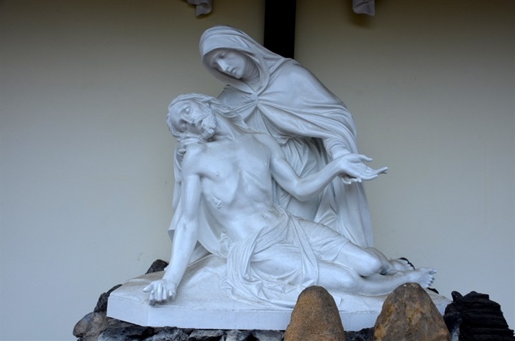 Pomnik upamiętniający ks. Jerzego Popiełuszkę znajduje się przy zewnętrznej ścianie prezbiterium kościoła pw. św. Mikołaja. Podstawę pomnika wykonana jest z kamieni, na których położona jest płyta, a na niej Pieta – kompozycja rzeźbiarska przedstawiająca Matę Bożą trzymającą martwego Chrystusa. Za Pietą na ścianie kościoła krzyż. Od frontu na kamieniu narzutowym inskrypcja o treści: "MĘCZENNIKOWI KS. JERZEMU POPIEŁUSZCZE / SOLIDARNOŚĆ".