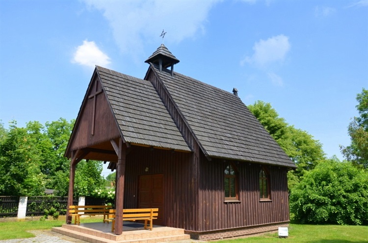 Kaplica stoi na terenie zabytkowego, drewnianego kościoła pw. Najświętszego Serca Pana Jezusa. Kaplica jest obiektem drewnianym, zbudowanym na planie prostokąta z trójbocznie zamkniętym prezbiterium. Nakryta jest dachem dwuspadowym krytym gontem, nad którym wznosi się niewielka sygnaturka nakryta czterospadowym dachem krytym gontem i krzyżem na szczycie. W ścianach bocznych po dwa okna na każdej ścianie. Nad wejściem do kaplicy dwuspadowy dach kryty gontem i wsparty na dwóch drewnianych słupach.