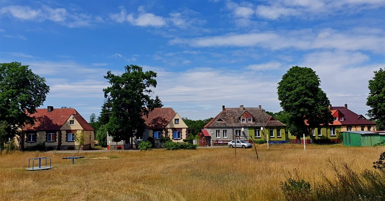 W centrum wsi stoi na pagórku ładny, ryglowy kościół filialny pw. św. Piotra i Pawła. Obok niego piękny, mocno podniszczony, choć nadal zamieszkały dom z charakterystycznym wykuszem-wieżyczką, pełniący przez pewien czas funkcję szkoły. W rejestrze zabytków znajduje się także miejscowy pałac wraz z parkiem, jednak obecnie jest to ruina (zawalił się w latach 1981-82), park również zapuszczony. W różnym stopniu zachowania jest też spory zespół budynków folwarcznych.