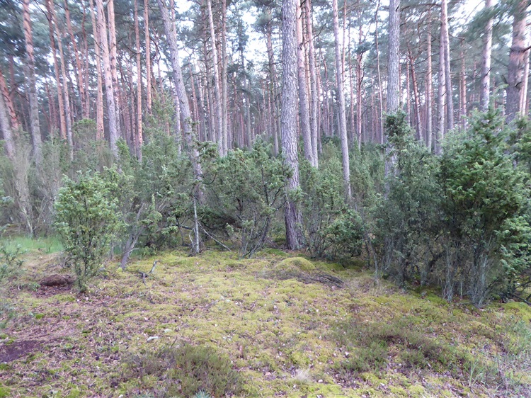 Jest to miejsce na obszarze wydm z bardzo starym drzewostanem sosnowym – wiek sosen ok 120 lat, wysokość dochodząca do 25 metrów z niezwykle bogatym podszyciem jałowca. Są tu widłaki (spłaszczone, goździste, jałowcowe), sasanki otwarte, mącznice lekarskie i goździki piaskowe. Właśnie duże nagromadzenie zdrowych, dorodnych krzewów jałowca stanowi niesamowite walory i wyjątkową atrakcję tego miejsca.