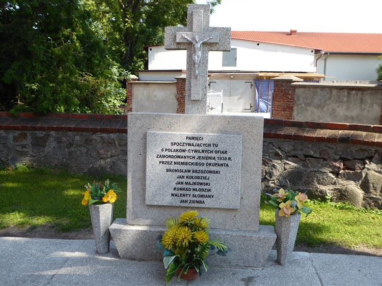 Przy świątyni stoi pomnik Polaków zamordowanych przez Niemców w 1939: Bronisława Brzozowskiego, Jana Majkowskiego, Jana Kołodzieja, Konrada Młodzika, Walentego Słomianego i. Jana Ziemby.