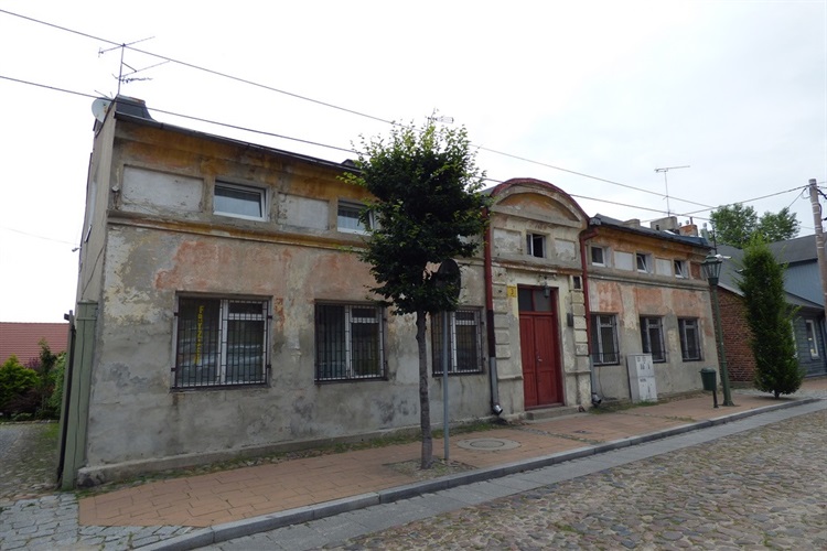 Murowany dom z użytkowym poddaszem. Elewacja pięcioosiowa, czwarta oś zwieńczona łukiem, boniowanie przy otworze drzwiowym. W górnej części, pomiędzy oknami wnęki płycinowe. Dwie z nich, nad otworem drzwiowym ze starymi kotwami do mocowania. Lokalizacja: ul. Rembowskiego 3