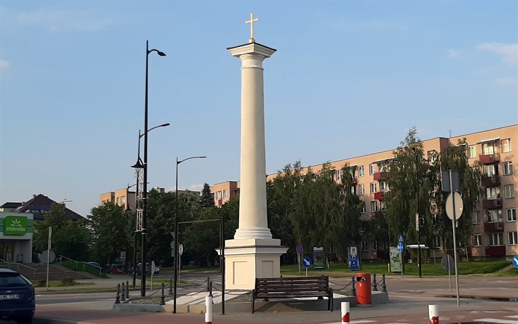 Kolumna została postawiona w 1766 r. W latach 60-tych XX w. wokół kolumny wyłożono 4 płyty przeniesione z nieistniejącego dziś cmentarza wojennego, z wyrytymi nazwiskami żołnierzy niemieckich i austro-węgiersich poległych latem 1915 r. Kolumna została wpisana do rejestru zabytków w 2012 r. a w 2015 r została wyremontowana.