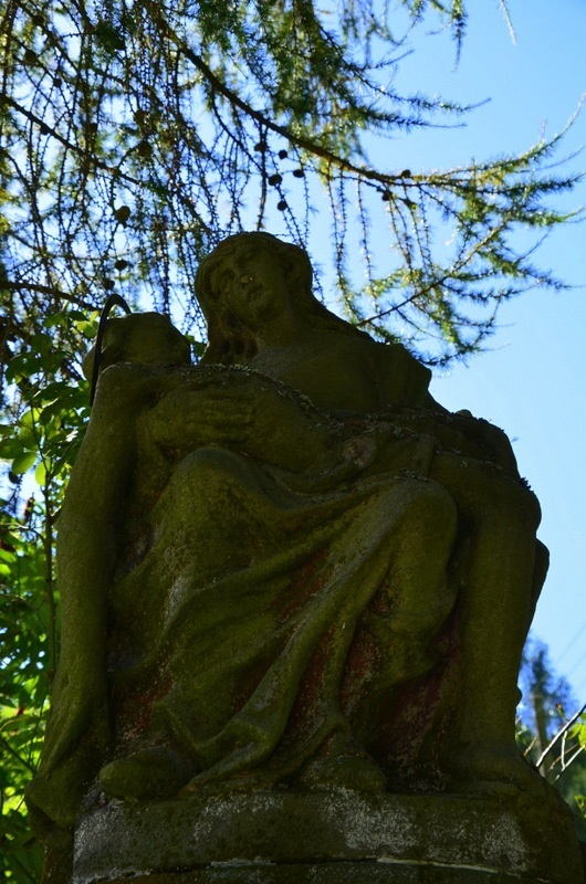 Kamienna Pieta stoi przy drodze głównej nieopodal posesji nr 15. Wykonana została w 1779 o czym informuje napis fundacyjny wyryty na tylnej ścianie cokołu. Ładny wysoki cokół zakończony wydatnym gzymsem posadowiony jest na niskiej podstawie. Imponująco wygląda frontowa ściana cokołu. Wyryta jest na niej inskrypcja , a powyżej płaskorzeźba przedstawiające dwie postacie. Cokół wieńczy Pieta – Matka Boska trzymająca na kolanach martwego Jezusa Chrystusa.