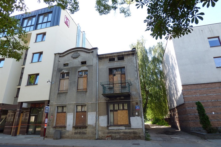 Jednopiętrowy, murowany, z poddaszem dom mieszkalny wzniesiony ok. 1925 r. Posadowiony na planie litery L, od podwórza oficyna z wysoką klatką schodową. Na fasadzie frontowego budynku owalny kartusz z brakującymi ozdobnymi elementami. Lokalizacja: ul. Marri Skłodowskiej-Curie 28 (od 1918 r. do 1938 ul. Podleśna).