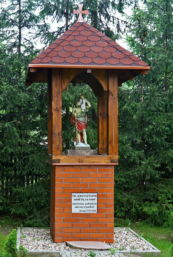 W miejscowości Rozogi, w pobliżu kościoła pod wezwaniem świętej Marii Magdaleny stoi figura świętego Krzysztofa. Rzeźba stoi na murowanej podstawie w którą murowano kamienną tablicę z napisem: "Święty Krzysztofie módl się za nami - kierowcom, podróżnym, ofiarom wypadków. Rozogi 24.07.2016."