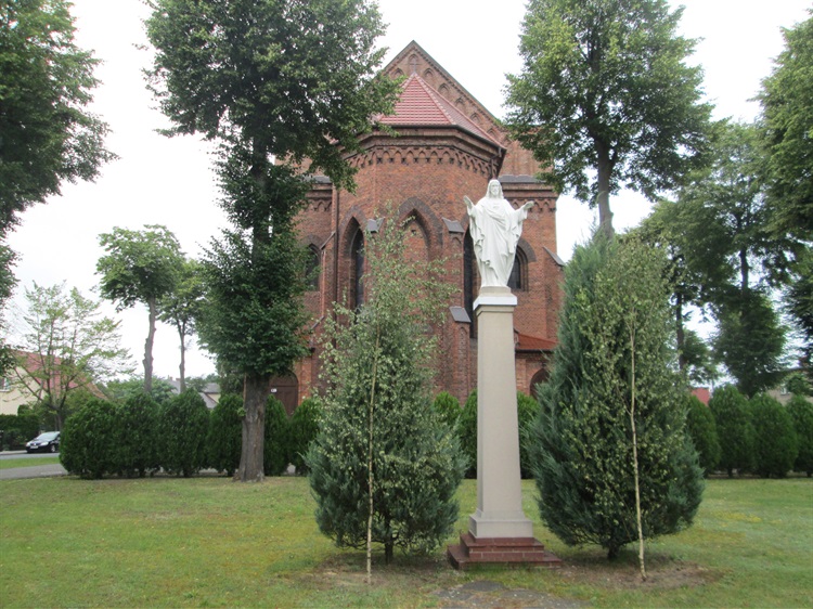 Figura Jezusa znajduje się przy kościele p.w. św. Wawrzyńca. Umieszczona jest na wysokim cokole. Przedstawia Jezusa z rozłożonymi rękami oraz sercem widocznym na klatce piersiowej.