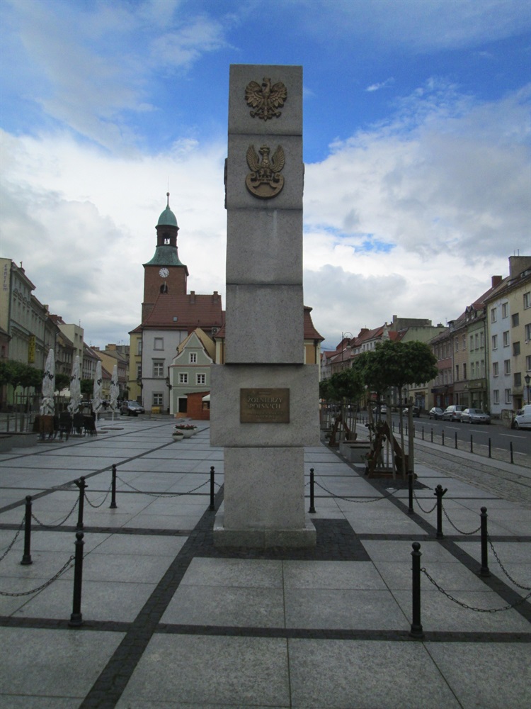 Pomnik Żołnierzy Polskich znajduje się na Placu Wolności. Ufundowany został w 1985 roku, w 40-rocznicę powrotu Ziem Zachodnich i Północnych do macierzy. W górnej części monumentu dostrzec możemy godło państwowe, orzeł wojskowy – obecny symbol Wojska Polskiego III RP oraz orzeł Ludowego Wojska Polskiego zwany kuricą.