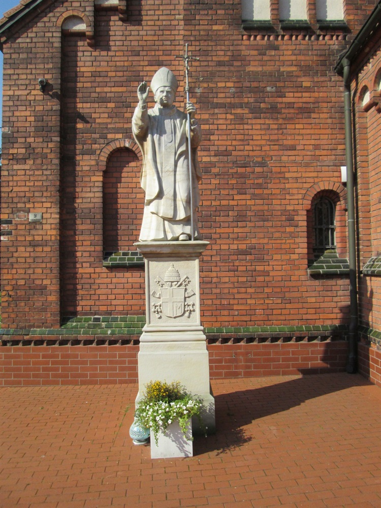 Pomnik Jana Pawła II znajduje się przy kościele p.w. Wniebowzięcia NMP. Jest to biały monument przedstawiający Ojca Świętego z pastorałem i ręką uniesioną ku górze. Na cokole umieszczony jest herb papieski.