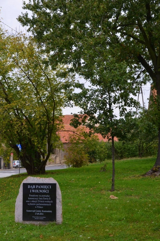 Dąb posadzony został w 2014 r. na skwerze Jana Pawła II. Przed drzewkiem ustawiony został kamień z tablicą upamiętniającą to wydarzenie. Na tablicy umieszczona została treść "DĄB PAMIĘCI I WOLNOŚCI / Posadzony na pamiątkę kanonizacji Jana Pawła II oraz z okazji 25–lecia wolnych wyborów parlamentarnych w Polsce / Samorząd Gminy Kostomłoty / 25.05.2014 / Wójt Gminy Kostomłoty Wacław Jaskula".