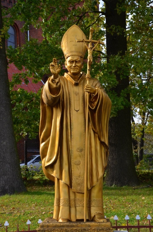 Pomnik św. Jana Pawła II stoi przed kościołem pw. św. Jerzego i MB Różańcowej. Postawiony został 28 maja 2018 r. Rzeźba Jana Pawła II wieńczy prosty postument murowany z kamienia. Jan Paweł II przedstawiony jest z tradycyjnym pastorałem trzymanym w lewej ręce i uniesioną prawą ręką w geście udzielania błogosławieństwa.