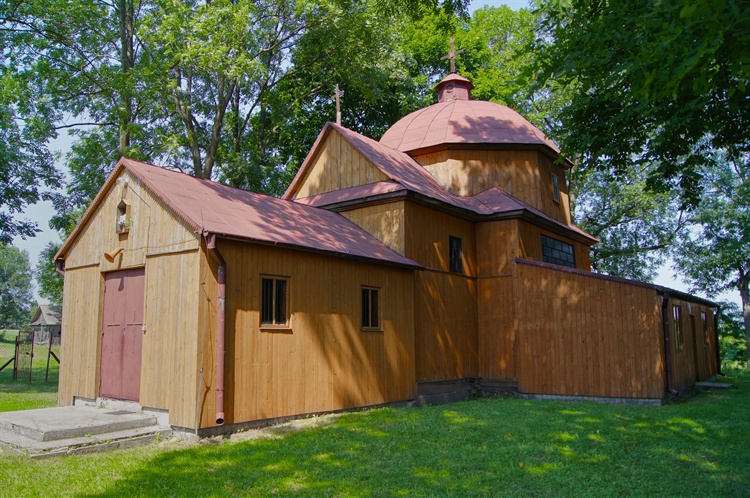 Drewniany kościół św. Jana Ewangelisty (1867), dawniej cerkiew unicka.
