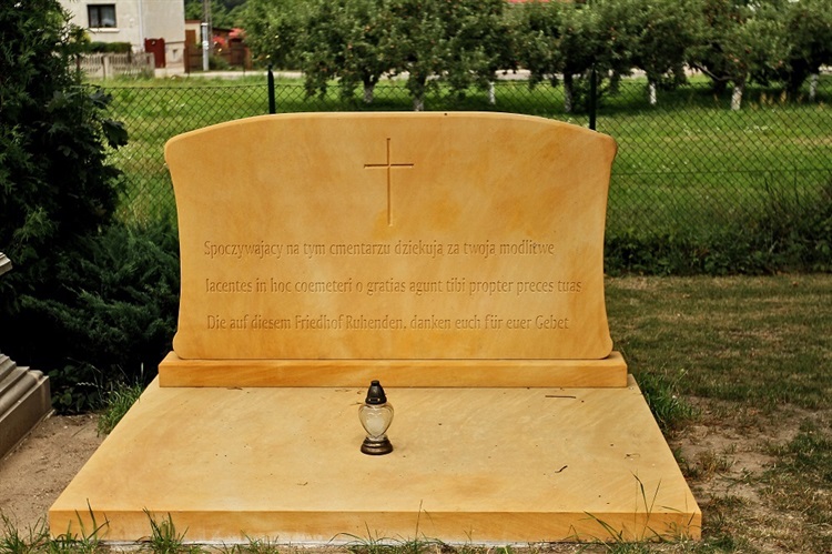 Na terenie dawnego cmentarza przykościelnego parafii Wniebowzięcia Najświętszej Maryi Panny w Cieszkowie stoi pomnik upamiętniający pochowanych na cmentarzu. Na pomniku w formie grobowca widnieje napis w trzech językach: „Spoczywający na tym cmentarzu dziękują za twoją modlitwę. Iacentes in hoc coemeteri o gratias agunt tibi propter preces tuas. Die auf diesem Friedhof Ruhenden danken euch fur euer Gebet”.