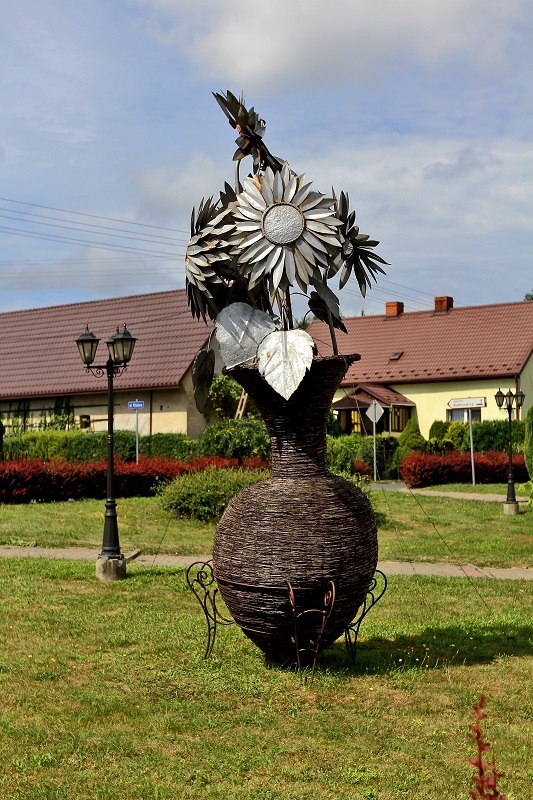 Na skwerze u zbiegu ulic Kasztanowej i Parkowej stoją ciekawe współczesne rzeźby. Rzeźby przedstawiają wykonane z metalu kwiaty i rośliny umieszczone w donicach i wazonach wykonanych z wikliny.