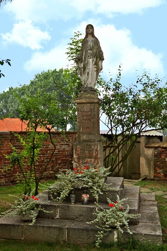 Na terenie przykościelnym parafii pod wezwaniem św. Jana Chrzciciela w Zdunach stoi figura Matki Bożej Niepokalanej. Rzeźba została ustawiona na wysokim postumencie i trzystopniowej podstawie. Na postumencie widnieją napisy: „Uzdrowienie chorych - módl się za nami. J.U.K. Maj 1930”. W pobliżu figury, na mniejszym postumencie stoi rzeźba klęczącego anioła.