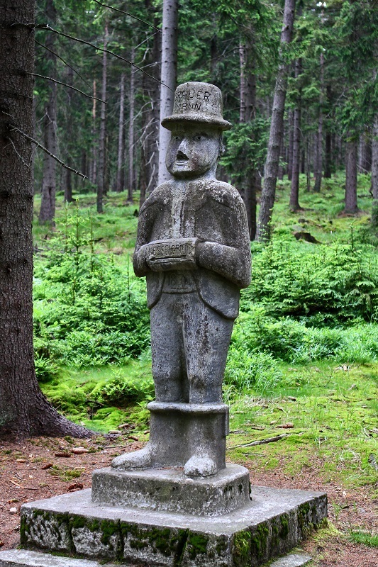 Rzeźba przedstawia mężczyznę w kapeluszu z rękami schowanymi w mufce. Na kapeluszu widnieje napis GRAUER MANN czyli Szary Człowiek. Na mufce wyryto nazwę miejscowości Nesselgrund oraz strzałkę wskazującą kierunek, a poniżej rok 1872. W drugiej połowie XX wieku figura została zniszczona. Z tyłu rzeźby widnieją daty renowacji i naprawy, oraz wyryte nazwisko Andrzej Pękalski, dzięki któremu rzeźba odzyskała dawny wygląd i powróciła na swoje miejsce.