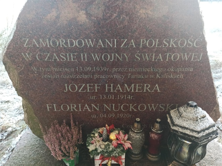 Po wejściu armii niemieckiej w czasie II wojny światowej został zajęty tartak, a jego pracowników rozstrzelano. Pomnik znajduje się w miejscu, gdzie zostali rozstrzelani dwaj pracownicy tartaku.
