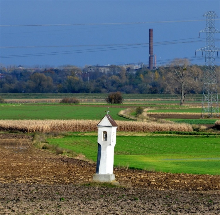Kapliczka stoi na polu za wsią Folwark. Widoczna jest z drogi krajowej nr 45. Jest to skromna kapliczka wzniesiona prawdopodobnie pod koniec XVIII wieku. Kapliczka posadowiona jest na niskiej podstawie, jest murowana, o narożachściętych do wysokości około 3/4 wysokości i nakryta dwuspadowym daszkiem z krzyżem na szczycie. W ściankach górnej części kapliczki prostokątne wnęki z figurkami świętych.