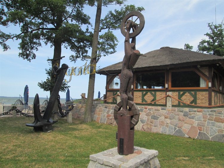 Rzeźba „Podróżnik” znajduje się na plaży nieopodal restauracji. Jej autorem jest artysta Andrzej Kurowski. Powstała z inicjatywy Klubu Motocyklowego Kardan, który od kilkunastu lat organizuje zloty motocyklowe w Tolkmicku. Jest to jedna z rzeźb, która początkuje kardanowski szlak. Jej odsłonięcie miało miejsce 14 maja 2016 roku.