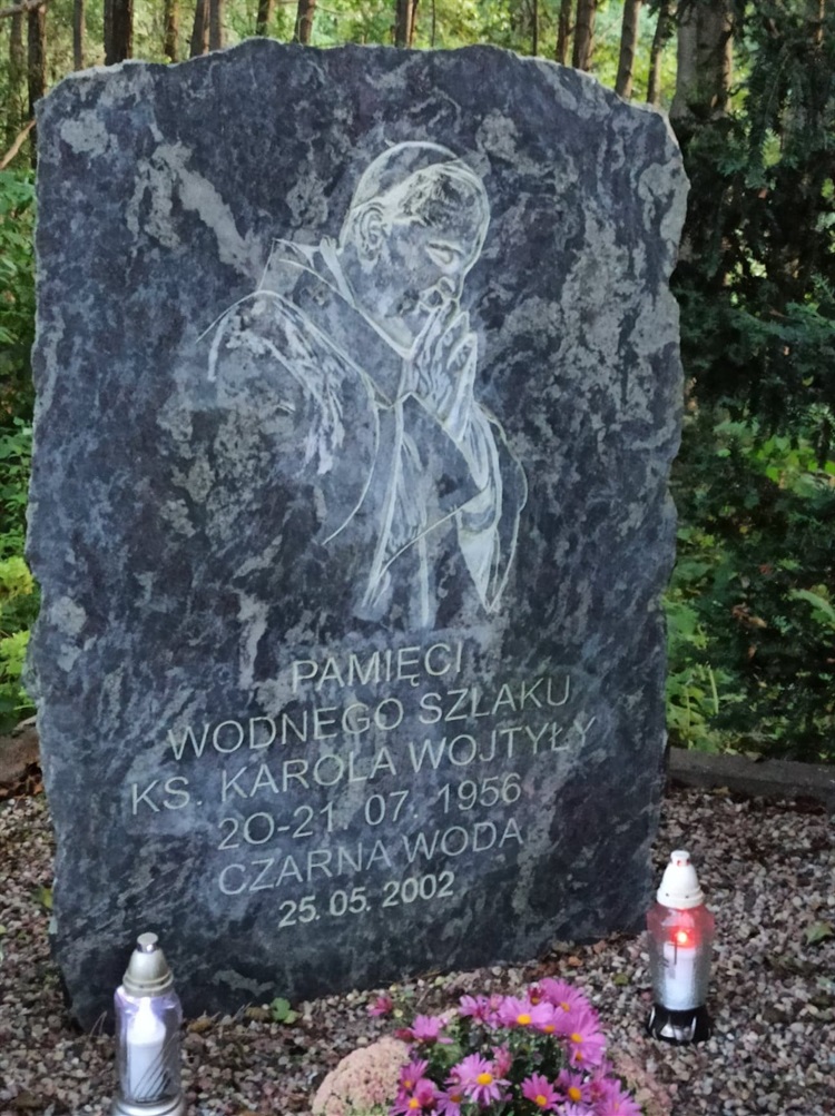 Kamienny pomnik który upamiętnia postój ks. Karola Wojtyły podczas spływu kajakowego rzeką Wdą w dniach 20-21 lipca 1956 roku. Pomnik usytuowany jest za cmentarzem parafialnym w stronę rzeki Wda.