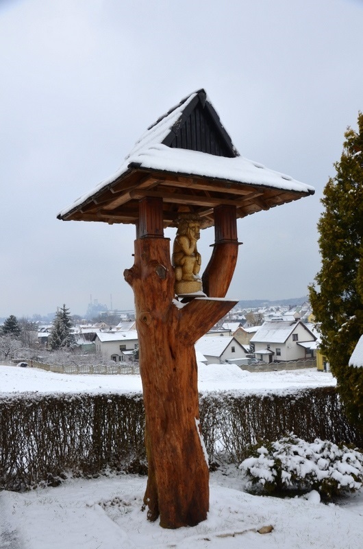 Kapliczka to wysoki, rozłożysty pień nakryty daszkiem gontowym. Daszek chroni niewielką, drewnianą figurkę Chrystusa Frasobliwego. Jest to tradycyjne przedstawienie zatroskanego Chrystusa, który siedzi na pieńku, prawą dłonią podpiera głowę, na której nałożoną ma koronę cierniową.