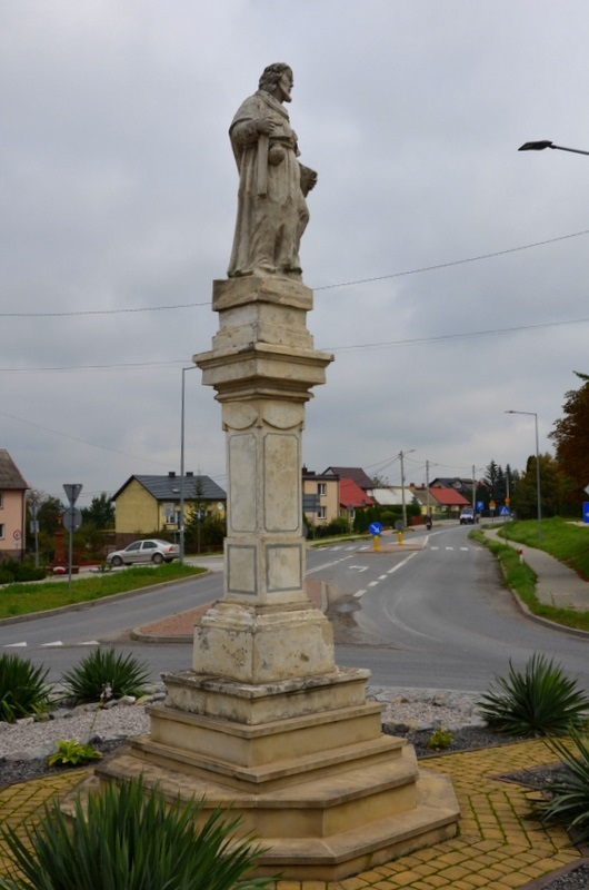 Figura świętego Jakuba Apostoła znajduje się na rondzie u zbiegu ulic Częstochowskiej i Czarnowskiej. Wysoki cokół z rzeźbą świętego stoi na nieco szerszej podstawie posadowionej na kilkustopniowym podwyższeniu. Na jednej ze ścian cokołu widoczne resztki nieczytelnej inskrypcji. Św. Jakub Apostoł stoi na małym cokoliku umieszczonym na gzymsie cokołu. Przedstawiony jest z bukłakiem przywiązanym sznurem, zwojem trzymanym w prawej ręce i księgą w ręce lewej.