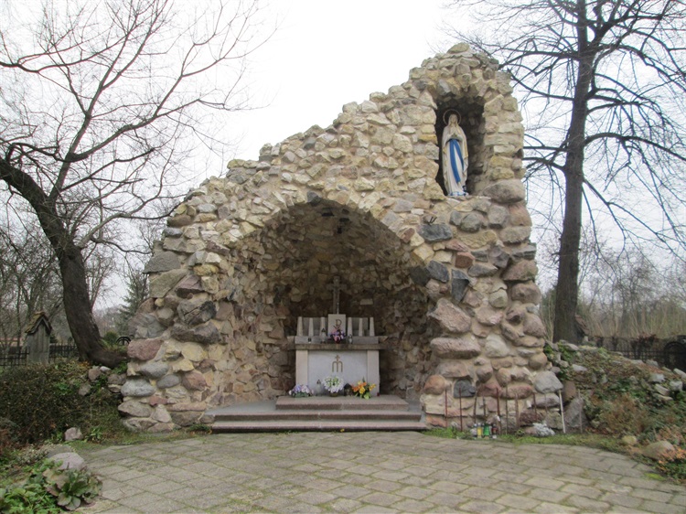 Grota Matki Bożej z Lourdes znajduje się przy nowym kościele p.w. św. Bartłomieja. Zbudowana jest z kamienia polnego. Figura świętej umieszczona jest we wnęce w górnej części, po prawej stronie. Po stronie lewej wewnątrz groty znajduje się ołtarz polowy. W 2018 roku, po prawie 70 latach od powstania została gruntownie wyremontowana.
