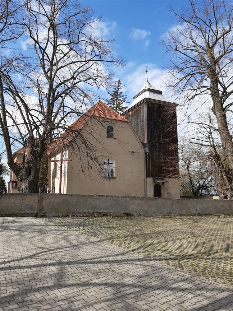 Historia kościoła p.w. św. Andrzeja Apostoła sięga 1621 rok, kiedy to został ufundowany przez Łukasza Opalińskiego. Po stu latach drewniana świątynia groziła zawaleniem i w roku 1725 w miejscu tym powstała nowa budowla, która przetrwała tylko do 1729 roku. Uległa bowiem spaleniu. Trzecia świątynia wybudowana została w 1731 roku. Jest to kościół murowany z drewnianą wieżą.