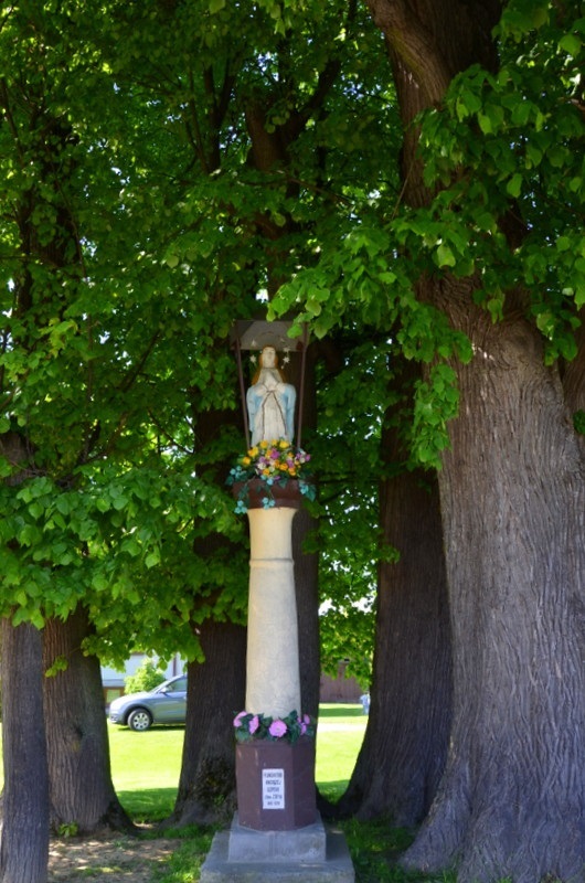 Kolumna stoi pod dorodnymi lipami. Ośmioboczna podstawa kolumny posadowiona jest na dwustopniowym podwyższeniu. Na podstawie napis fundacyjny: „FUNDATOR ANDRZEJ GÓRSKI / ŻONA ZOFIA / ROK 1870”. Kolumna zakończona jest głowicą, na której stoi ludowa figura Matki Boskiej. Matka Boska nakryta jest niebieskim płaszczem, a nad głową ma umieszczoną gwiezdną aureolę. Rzeźba stoi pod metalowym, czterospadowym daszkiem wspartym na czterech prętach.