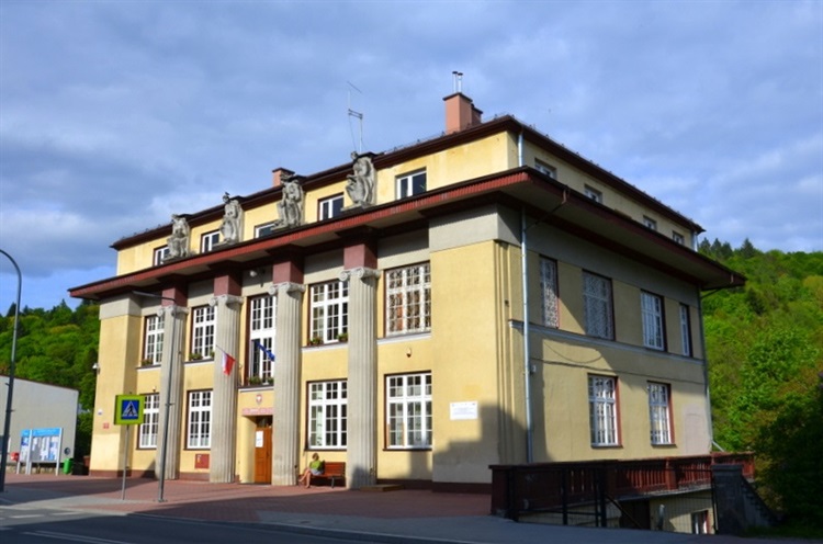 Okazały gmach urzędu miejskiego znajduje się przy ulicy Józefa Ignacego Kraszewskiego. Jest to obiekt wzniesiony na rzucie prostokąta, murowany, otynkowany i nakryty płaskim dachem. Budynek od frontu zdobią cztery ozdobne kolumny zakończone kapitelem, który pełni rolę konstrukcyjną i dekoracyjną. Budynek trzykondygnacyjny, pomiędzy drugą, a trzecią kondygnacją wystający daszek, nad którym umieszczone zostały cztery rzeźby.
